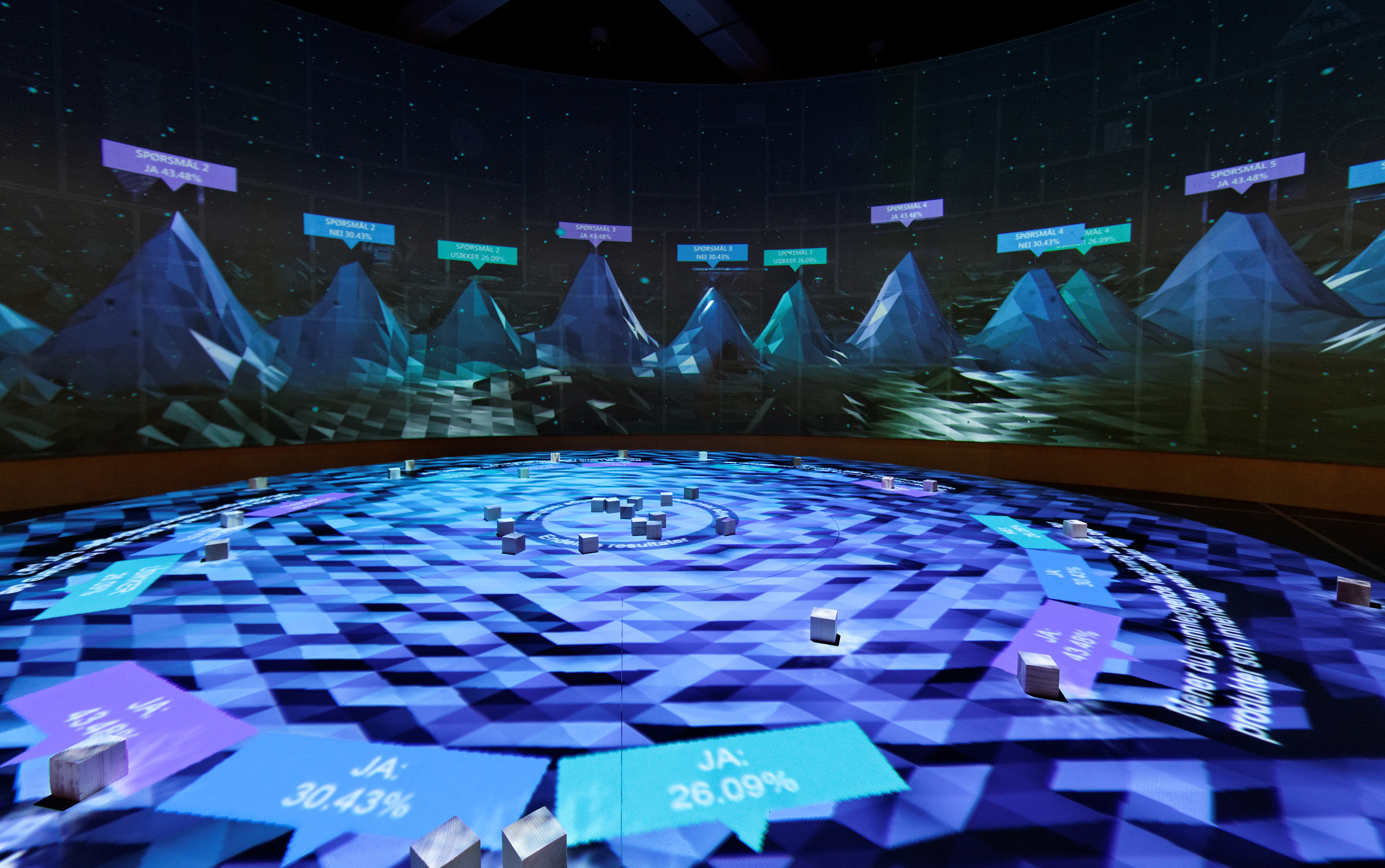 Ting sessions run from 8 to 30 minutes depending on the number and age of the visitors. Each session ends with a real-time video visualization of the current group’s votes in the context of previous sessions—a visual metaphor for a democratic world cumulatively built by individual choices.