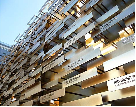 At the dedication in October 2009, it was evident that the moving tribute the Gensler and Zahner team envisioned had become a reality. As they watched and bagpipes played, family members of officers who lost their lives tucked white roses in the ledges of plaques and ran their fingers over the engraved names of their loved ones.