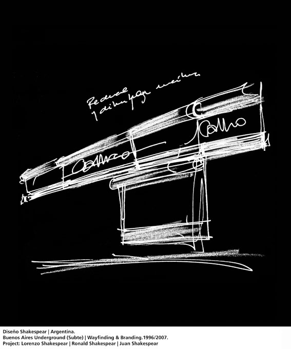 The first round of work began in 1995 and focused on identity, interior signage, and map redesign for the system of five lines. (A sixth has been added since then.) Ronald and his sons Lorenzo and Juan employed their typical project methodology of “research, analysis, synthesis, drafts, final project, implementation.” Lorenzo visited the major subway systems of the world and returned to the studio with the best and worst of system design. Alberta Verra describes the Shakespears’ work process as “creativity derived through understanding.”